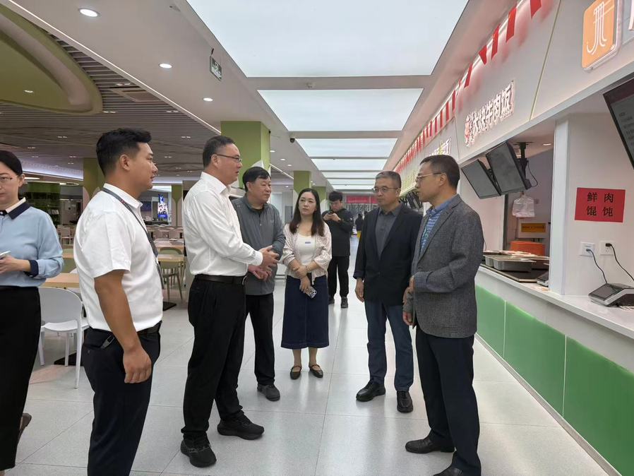 9月19日上午,淮安经济技术开发区管理委员会副主任朱兵、区市场监督管理局一分局局长陈雪雯来到江南平台,对学生餐厅开展食品安全与消防安全专项检查和工作指导。副校长张军及后勤服务中心相关负责人陪同。